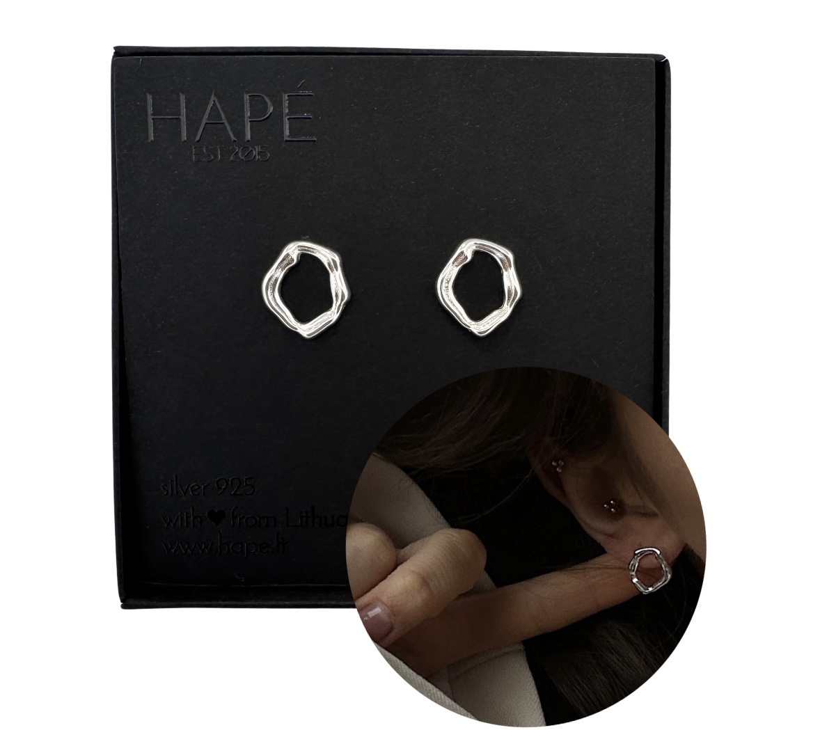 • Auskarai supakuoti puošnioje, juodo kartono dėžutėje – puikiai tiks dovanoti.
