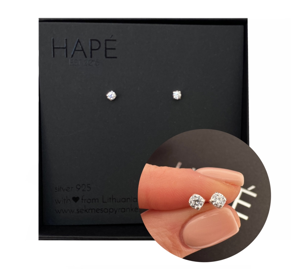 - Auskarai supakuoti puošnioje, juodo kartono dėžutėje – puikiai tiks dovanoti !