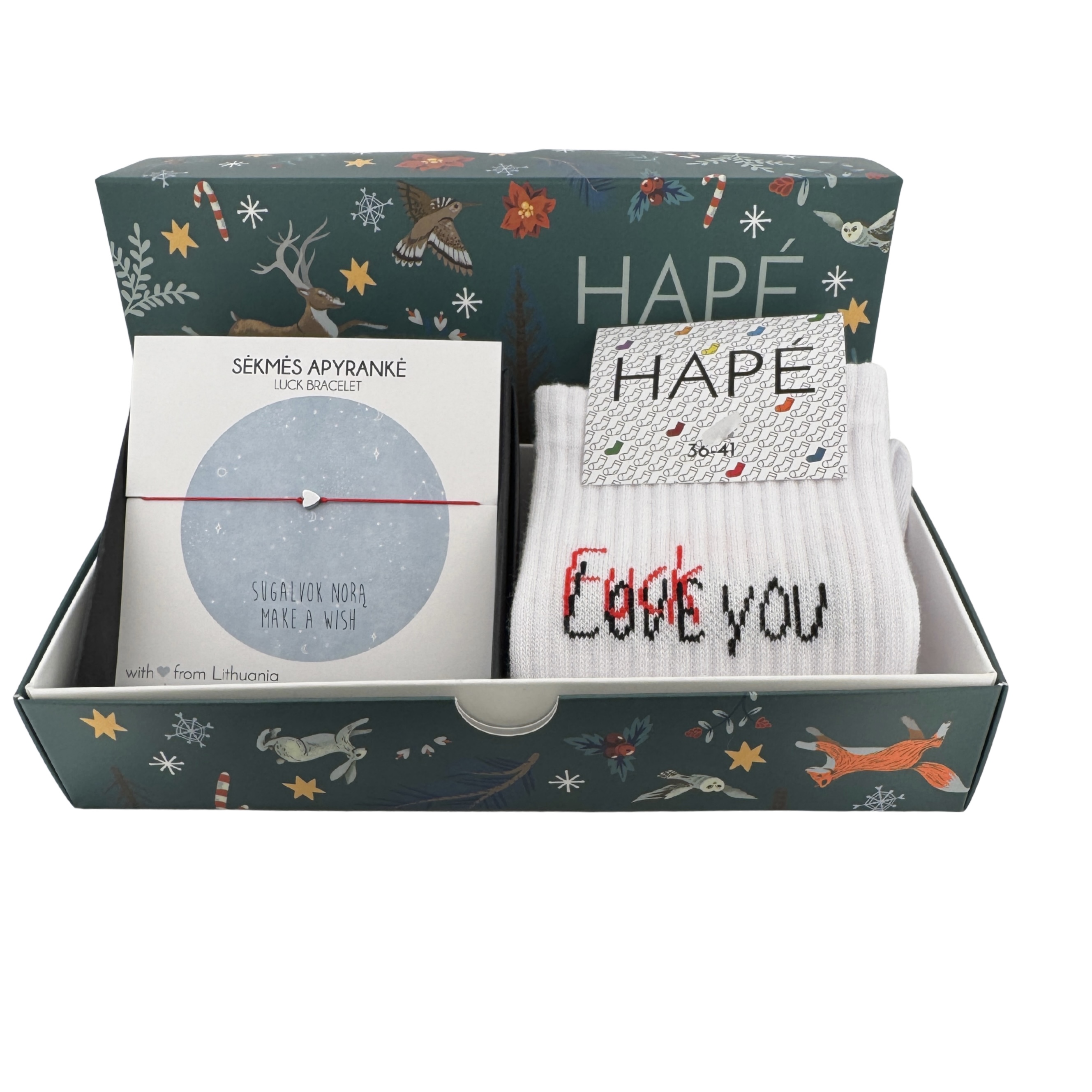 DOVANŲ RINKINYS KALĖDINĖJE DĖŽUTĖJE - kojinės ir MAKE A WISH apyrankė