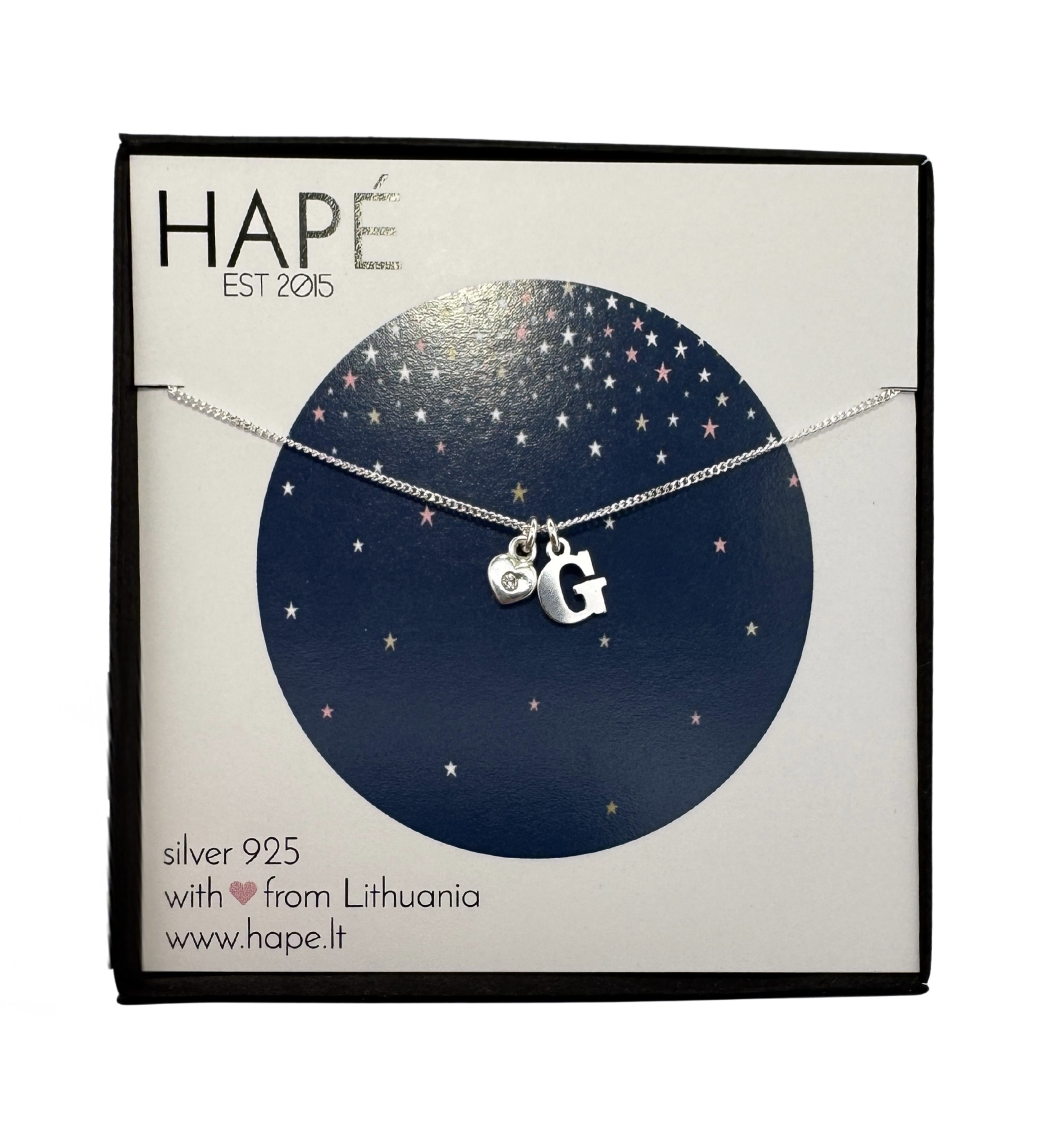 Smulki, sidabrinė raidelė ir širdutė ant vienos grandinėlės.