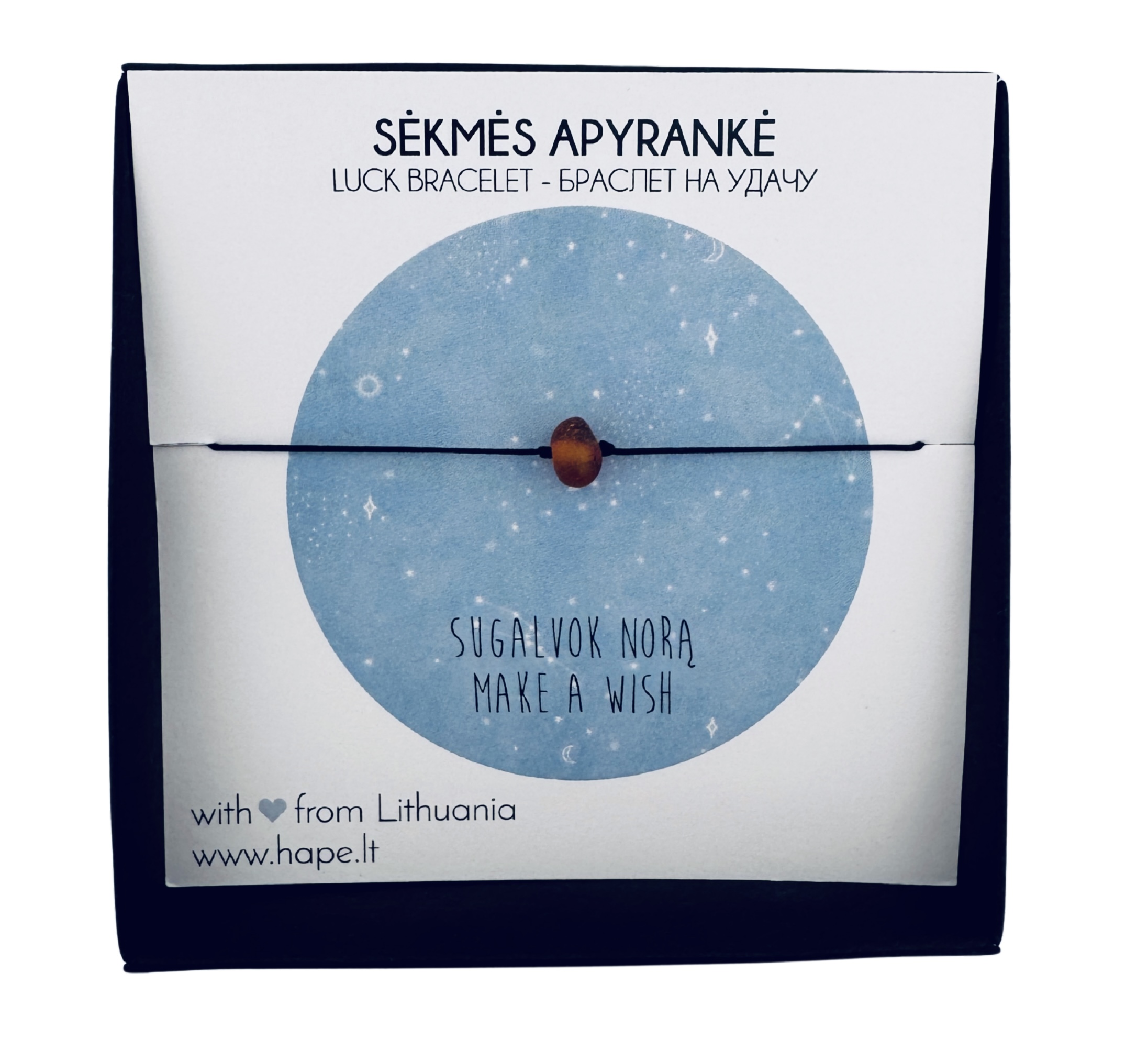 Sėkmės apyrankė MAKE A WISH su gintaru juodas/raudonas siūlas